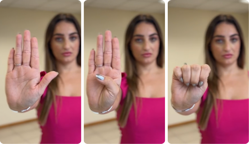 - Fechar os demais dedos sobre o polegar, simbolizando aprisionamento ou pedido de ajuda